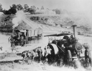 Templer proved his point, and the ‘traction engine brigade’ sailed for the Cape. Disaster: the ship carrying the engines was wrecked on the way out, and the outfit was almost entirely lost. On arriving at Cape Town, with the new unit, 45 Company RE, Colonel Templer was only able to organise an attenuated road service from local resources in traction engines, principally used at the base. He returned to the U.K. at the beginning of 1901, to resume his previous duties. Further consignments of engines were eventually sent out and the RE steam tractors were employed extensively up to the end of the war.