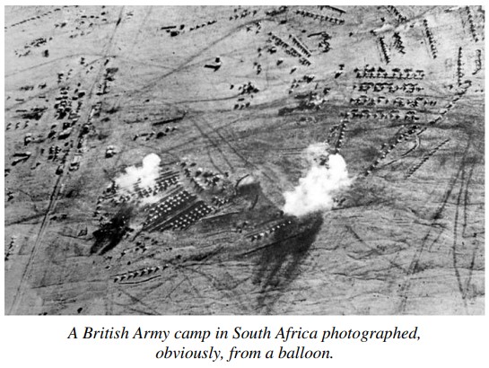 “…. observation made by the help of a balloon often permitted the English to note exactly the position of a battery, of a laager, or of military works. Therefore, the Boers took a dislike to the balloons. …. The balloons were a symbol of superiority on the side of the English which seriously disquieted them. …. They (the British) were so well informed about the Boer positions that they could divine the object of a combined movement and …. repulsed the attack on Platrand or Cerai’s Camp ….”